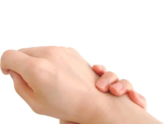 手首の中央にある、月状骨(げつじょうこつ)という小さな骨が、血流不足や繰り返しの負荷によって壊死(骨が死んでしまう状態)を起こす疾患です。症状は手首の中心付近の痛みや腫れ、動かしづらさです。物をつかむ動作や机を押すと痛むことが多く、進行すると骨の変形や関節の動きの制限が現れます。対処法は安静を保ち、固定(サポーターやギプス)で負担を減らすことが一般的です。