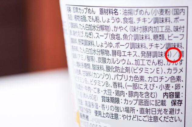 2015年に施行され、2020年4月に完全施行された食品表示法では、「原材料」と「添加物」を区別して表示することが義務づけられました。 多くの商品で原材料名の欄に「/(スラッシュ)」があり、このスラッシュ以降に記載されているものが食品添加物だと分かりやすくなっています。