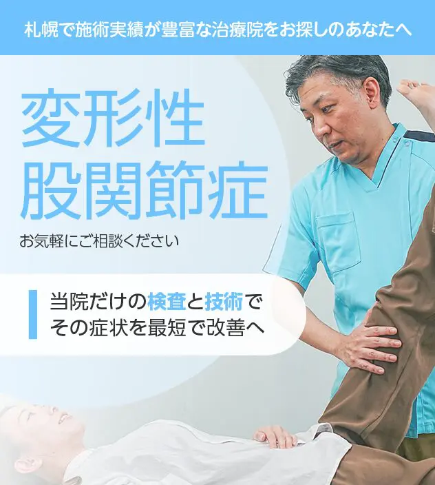 そのため当院では、個々に適した治療プランを提案しています。他院で改善しなかった方も諦める必要はありません。豊富な実績と充実した検査体制で、あなたの変形性股関節症改善を全力でサポートします。